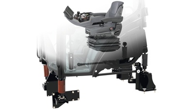 Завдяки підвісці на чотирьох точках кабіна повністю ізольована від шасі. Тому поштовхи та вібрації не доходять до оператора. Поздовжні та поперечні тяги з’єднують точки кріплення підвіски між собою та утримують кабіну в стабільному положенні на поворотах або під час гальмування. Уся система підвіски не потребує обслуговування.