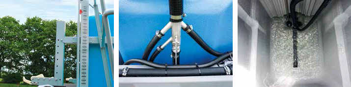 - Баки на 2500 і 3500 л - з одним поршневим мембранним насосом P200, бак на 4500 л - з двома поршневими мембранними насосами P200